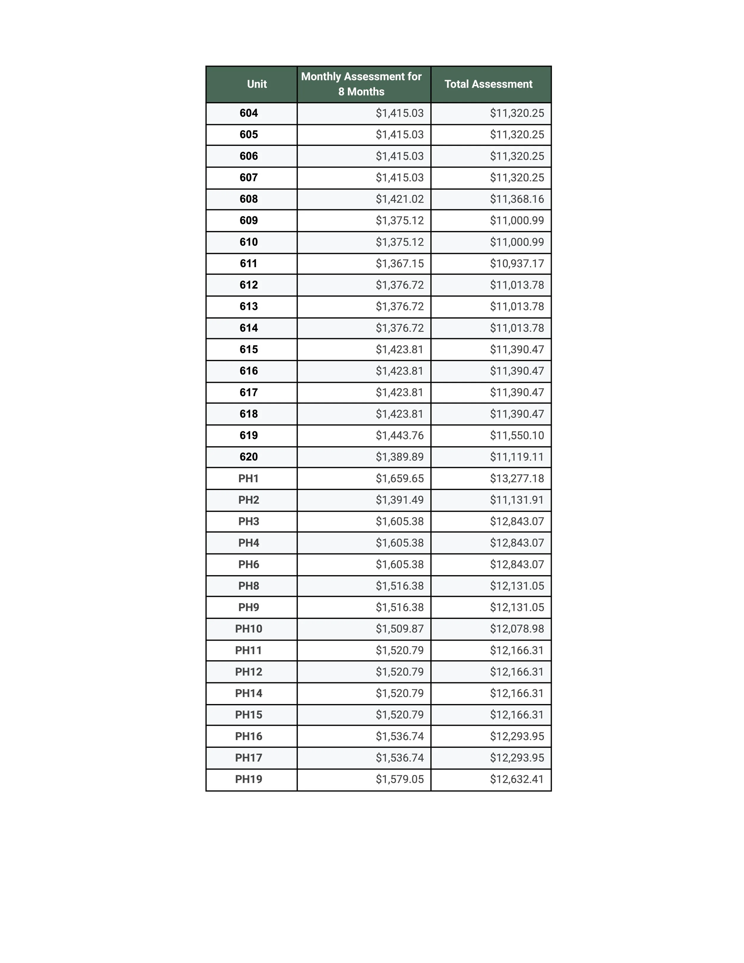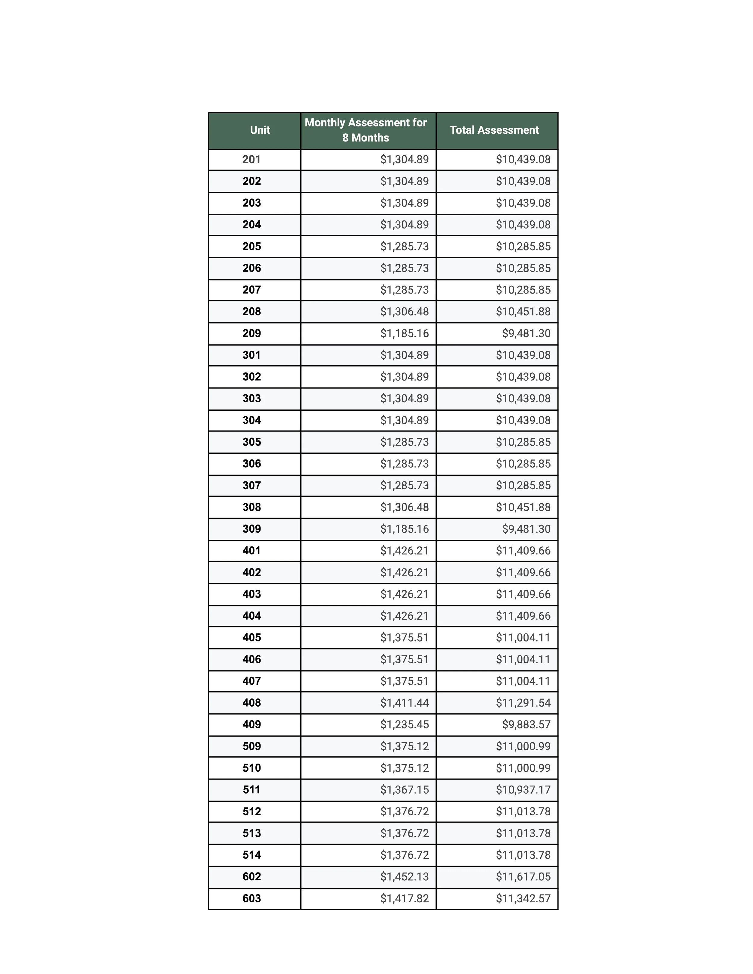 Special Assessment Allocation